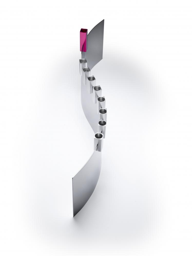 Laura’s inspiration for this modern menorah comes from a combination of the sea waves and the architecture in her home city of Tel Aviv.